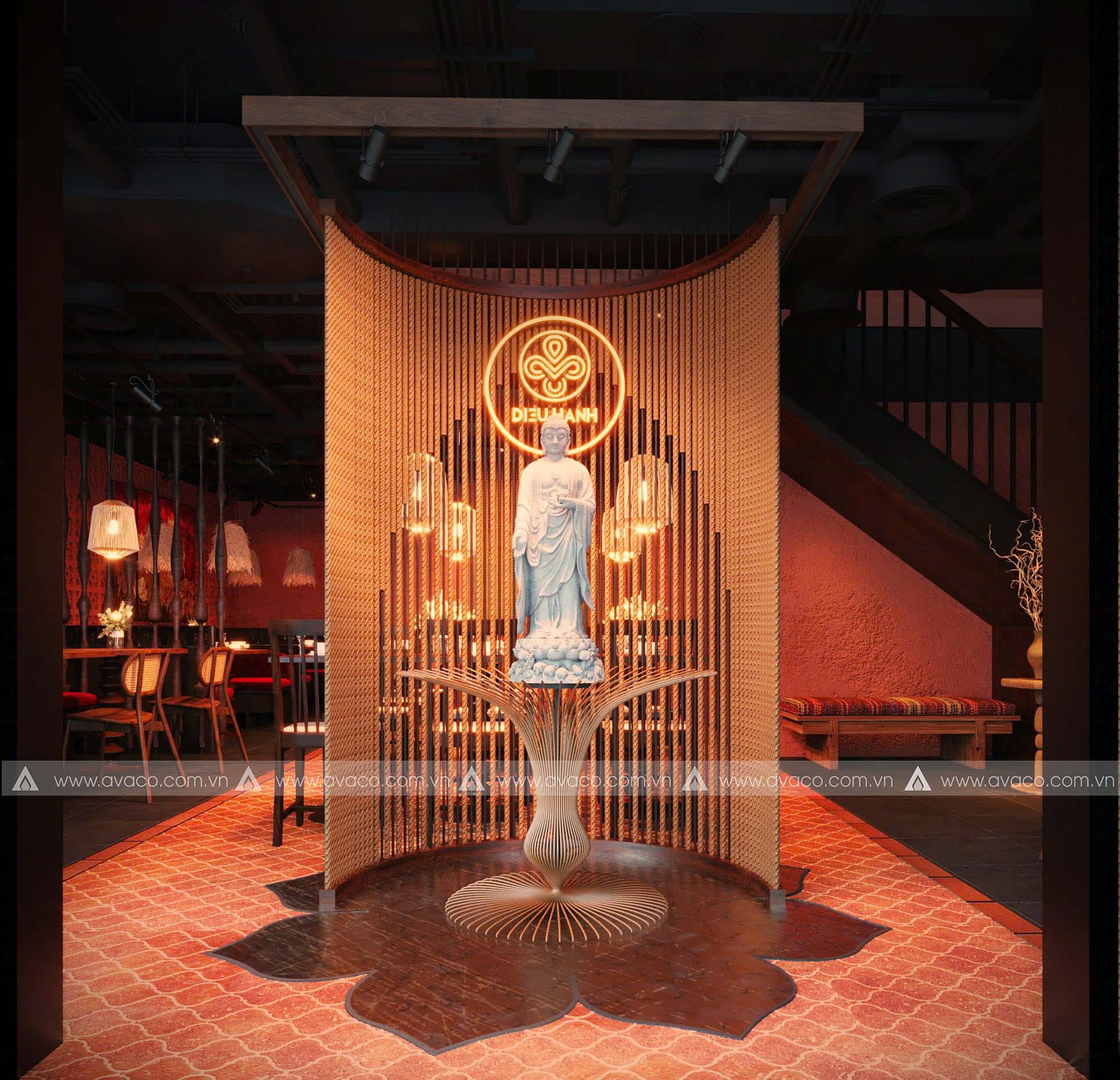 Trong những năm gần đây, xu hướng thưởng thức ẩm thực chay không chỉ gói gọn trong phạm trù tôn giáo hay ăn uống lành mạnh, mà đã trở thành một phong cách sống được ưa chuộng bởi sự cân bằng và thanh tịnh. Cùng với đó, nhu cầu thiết kế nội thất nhà hàng chay cũng ngày càng được quan tâm, đặc biệt là tại các đô thị lớn như TP.HCM. Một trong những công trình tiêu biểu theo hướng đó chính là nhà hàng chay Diệu Hạnh tại Ba Son, được AVA thiết kế với tâm huyết, sự thấu hiểu về mỹ học và văn hoá Á Đông.