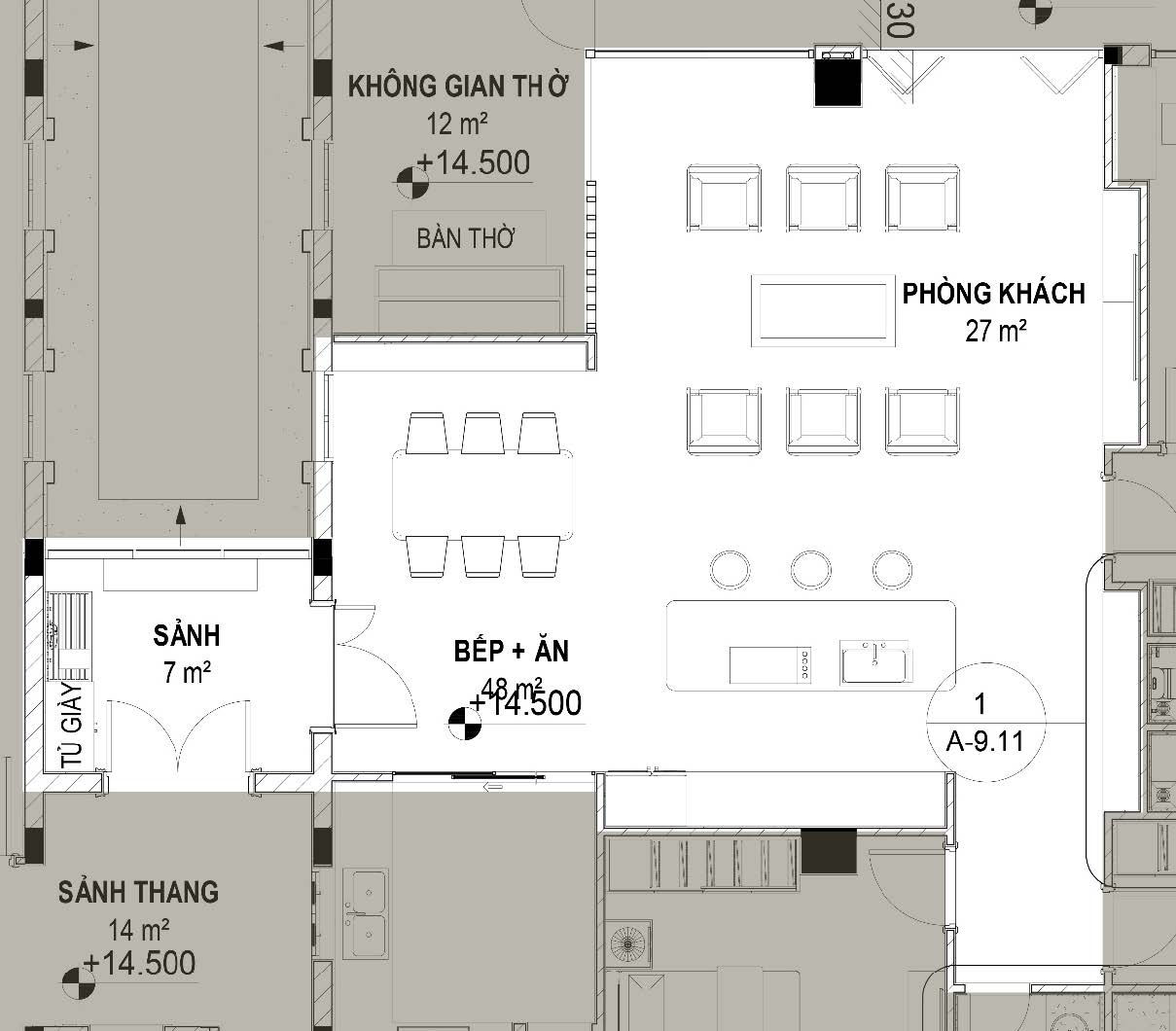Mỗi chi tiết được chọn lựa kỹ càng không phải để gây ấn tượng mà để phục vụ cuộc sống, để tạo trải nghiệm, để mang lại cảm giác. Trần coffered không chỉ đẹp mà còn làm không gian cao hơn, ấm áp hơn. Focal wall sunburst không chỉ nghệ thuật mà còn là điểm neo cho tâm hồn. Bố cục chữ U không chỉ cân đối mà còn mời gọi đối thoại, kết nối con người.